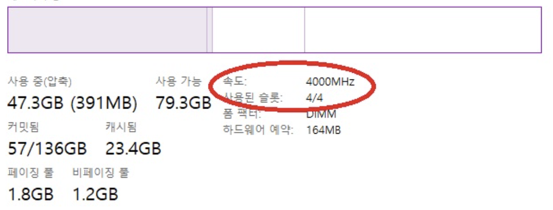위와 같이...풀뱅크로 전부 메모리를 끼워넣으면 원래 기본 메모리 MHz보다 속도가 안나오는 현상이 있다...