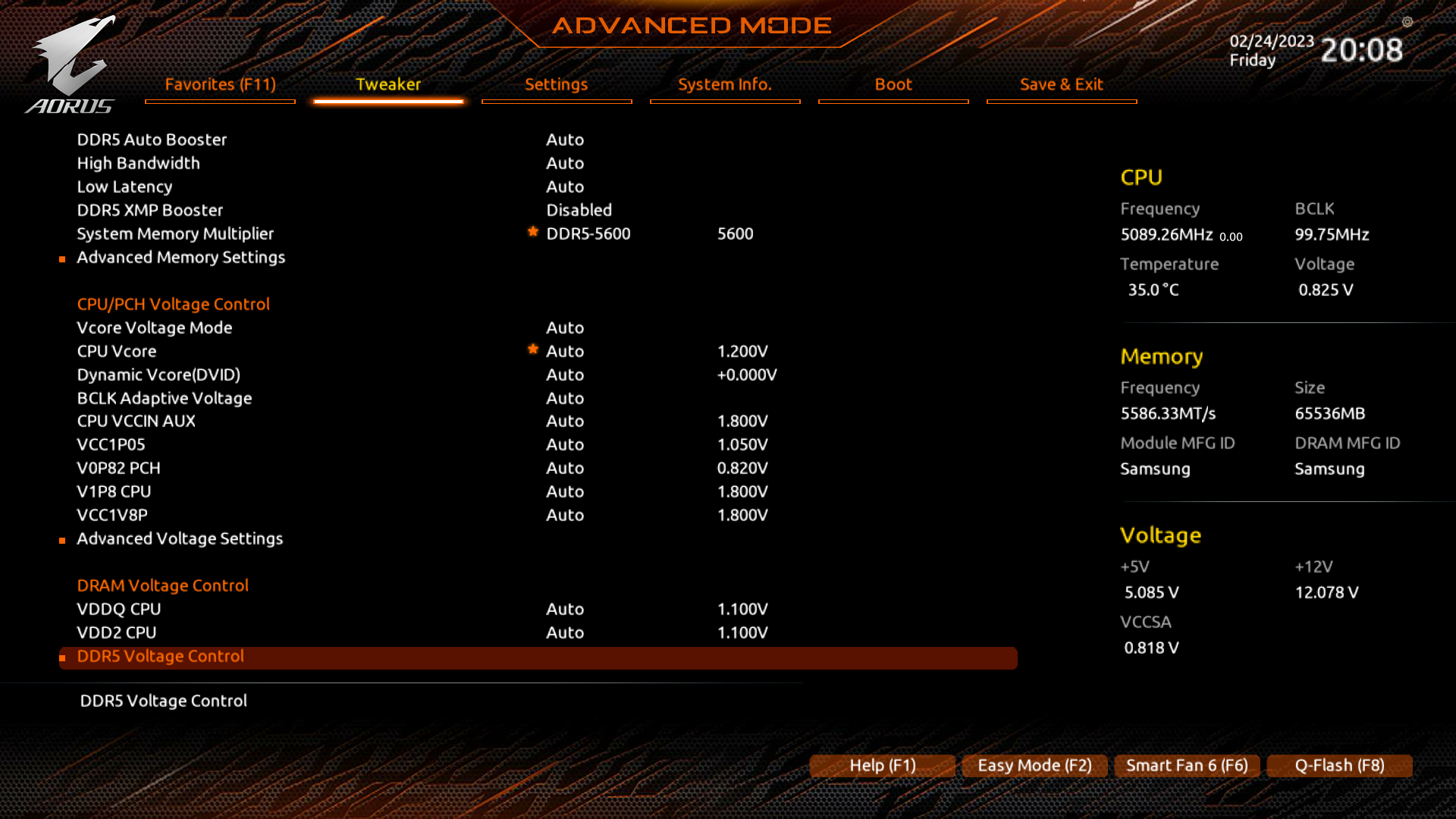 그후 제일 하단에 있는 DDR5 Voltage Control 진입