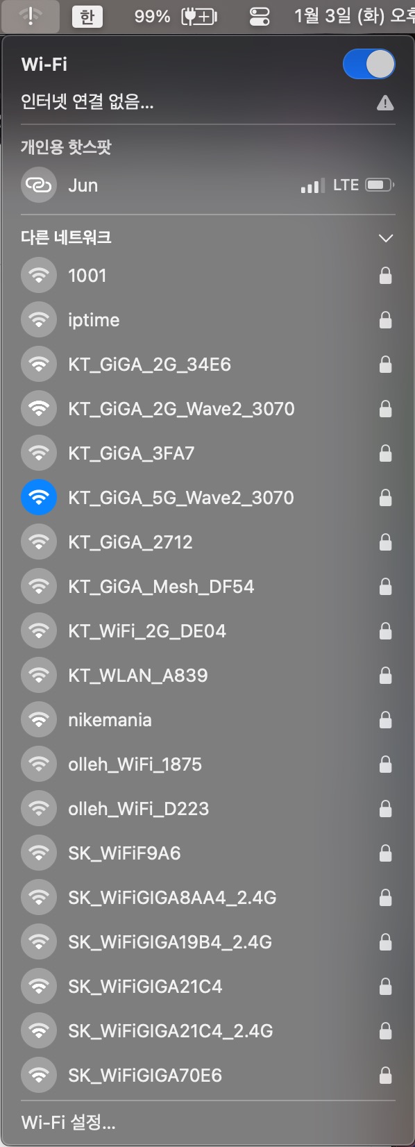막상 인터넷키면 인터넷 잘됨... 와이파이 끄기 버튼 눌러도 안꺼짐;;