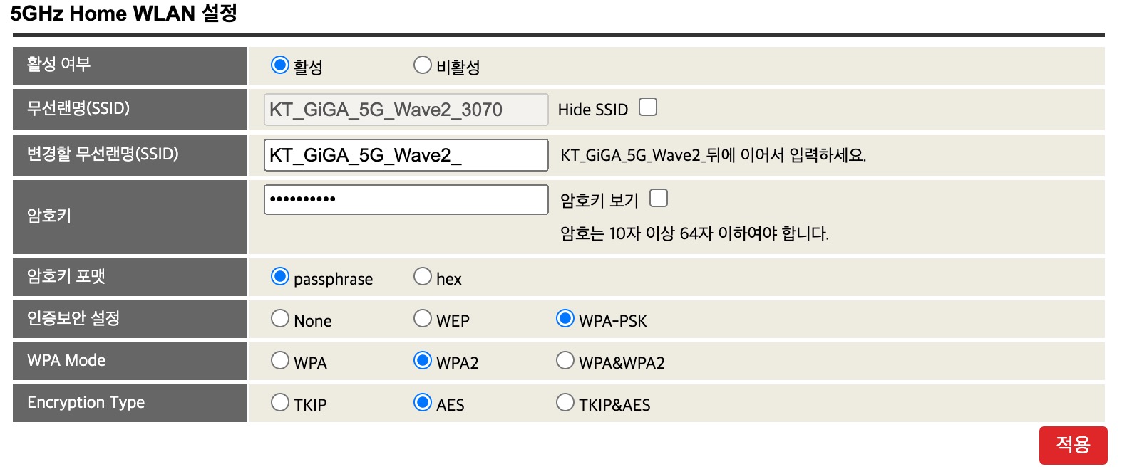 그래서 나는 kt 반기가(500mb)를 쓰고있어서 공유기 설정에 WPA모드가 기존에는 WPA&WPA2로 되어있는걸 WPA2로 변경했다....