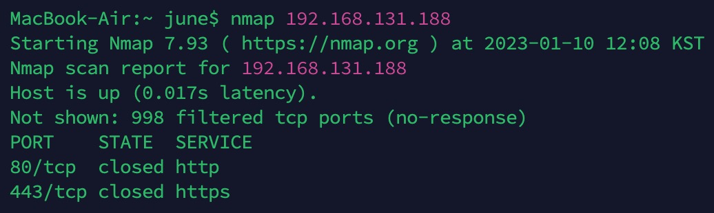 그리고 나서 nmap (검색할ip)를 넣으면